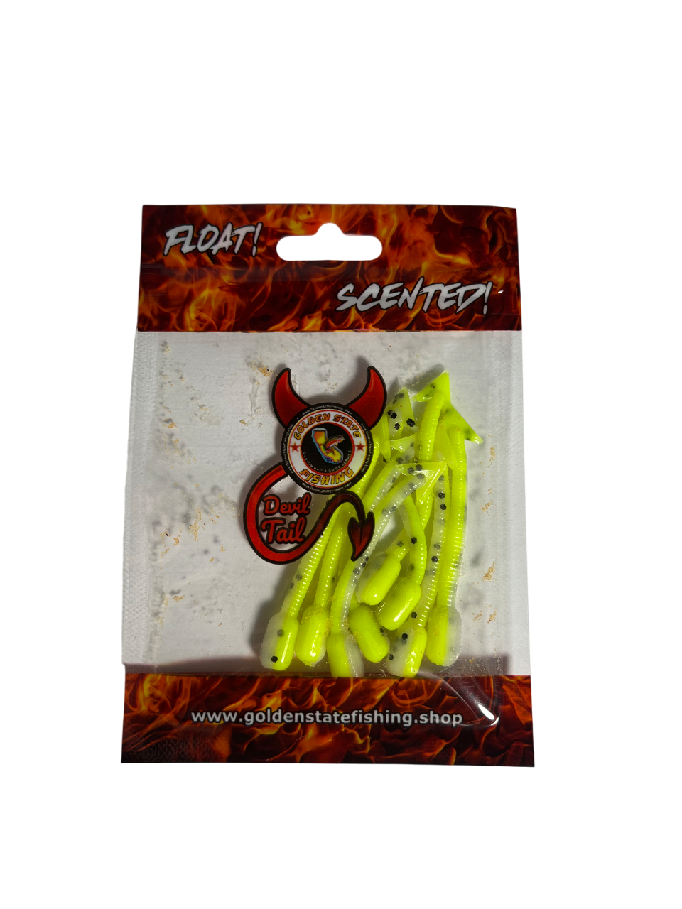 These baits float and are scented with a top of the line trout attractant. Best used on a Carolina rig set up with size 10 or 8 mosquito hooks or on drop shot.