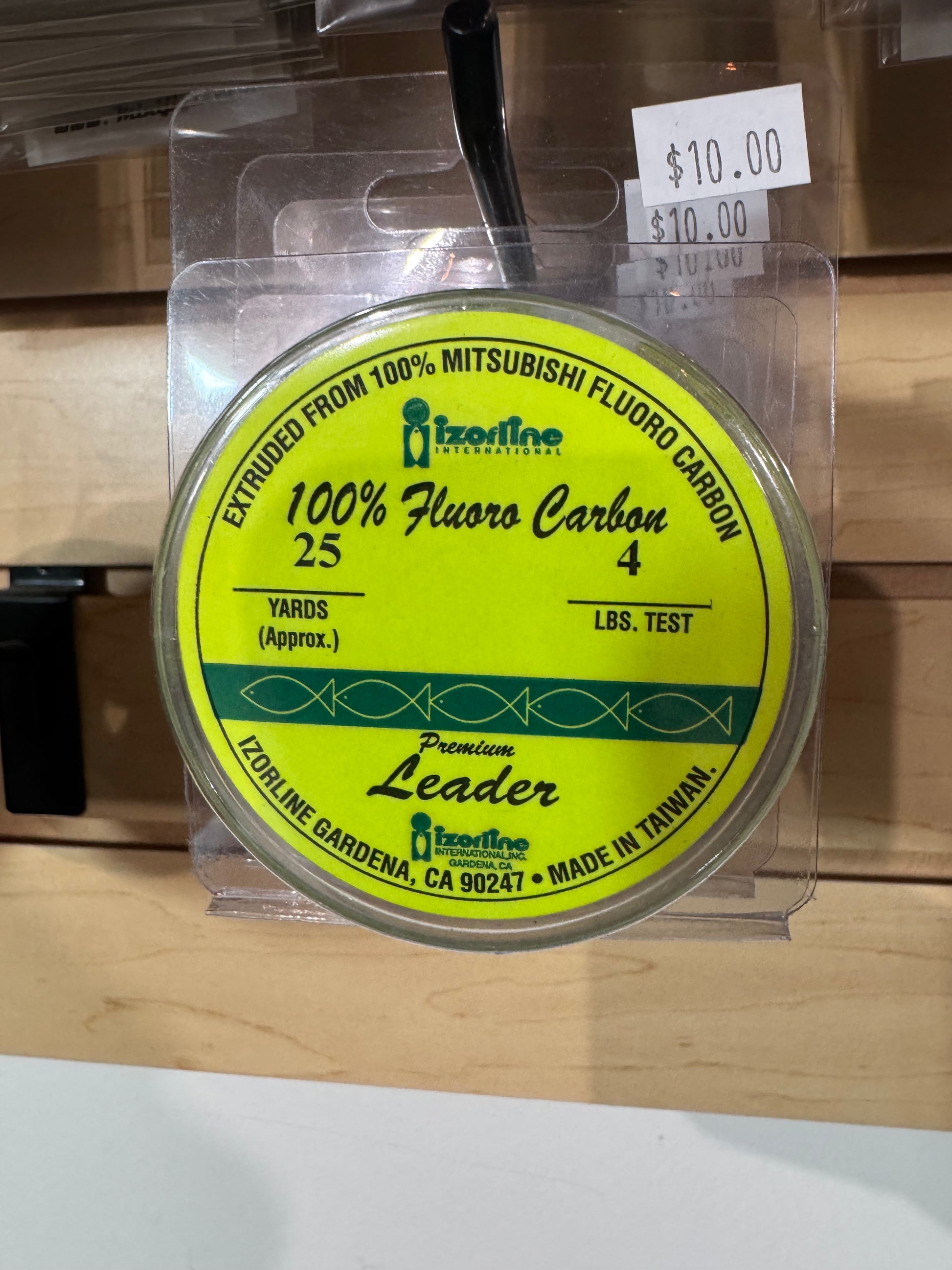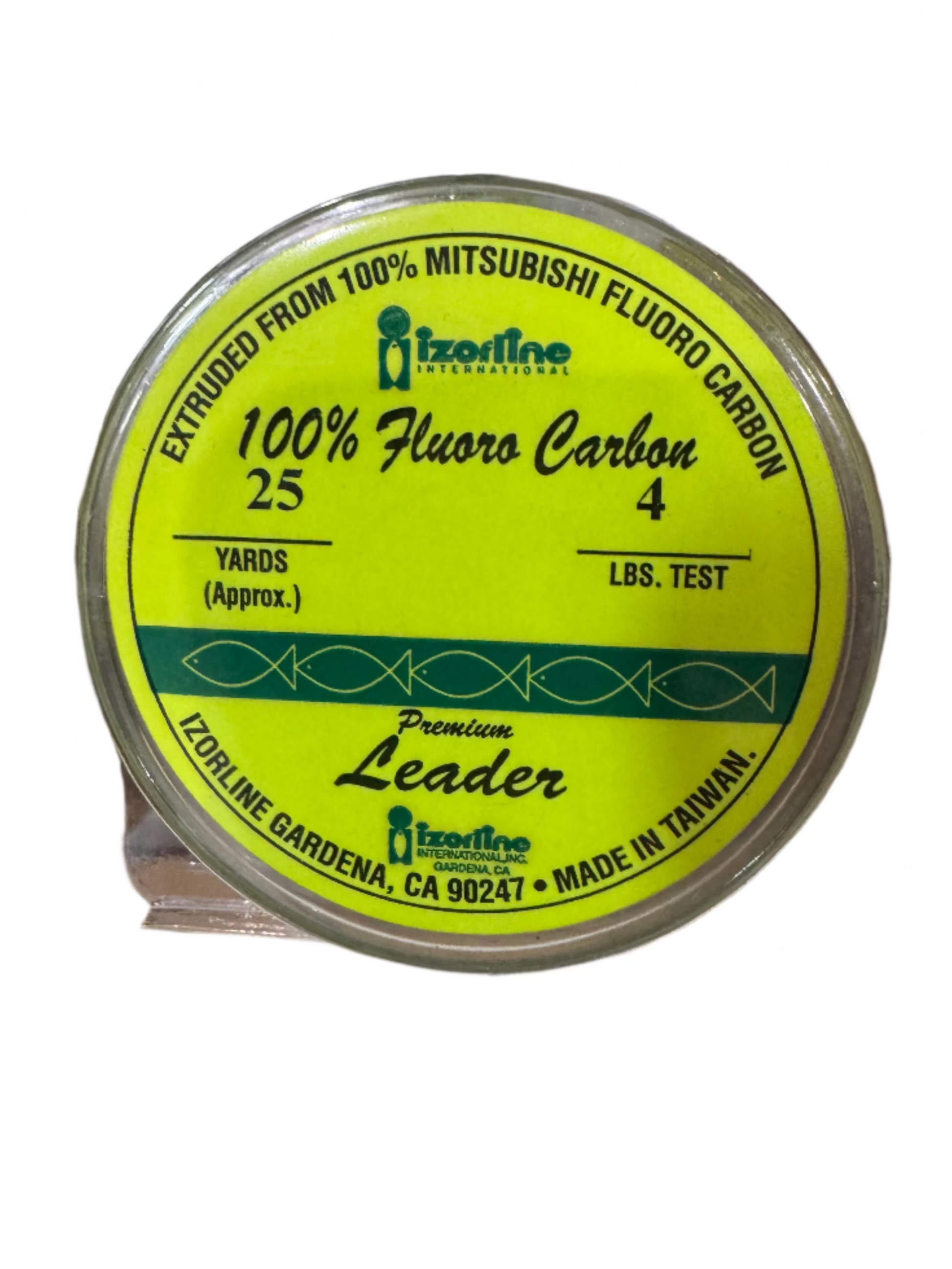 A 25 yard spool of 4 lb fluorocarbon. Fluorocarbon sinks better than Mono and disappears under water so this is ideal to tie as leader line to your Braid.
